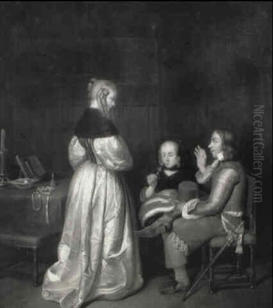 Bring the timeless beauty of Gerard Ter Borch's The Parental Admonition into your home with a handmade oil painting reproduction. Carefully recreated on canvas by skilled artists using traditional techniques, this piece captures the delicate brushwork, subtle light, and vibrant color of the original masterpiece. With museum-level quality and rich texture, it brings elegance and artistic depth to any space. Enjoy free shipping and make this masterpiece a part of your personal collection.