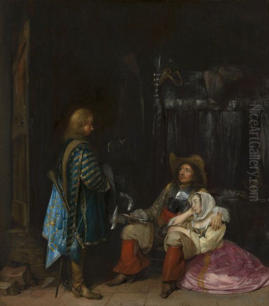 Bring the timeless beauty of Gerard Ter Borch's The Messenger, known as 'The Unwelcome News' into your home with a handmade oil painting reproduction. Carefully recreated on canvas by skilled artists using traditional techniques, this piece captures the delicate brushwork, subtle light, and vibrant color of the original masterpiece. With museum-level quality and rich texture, it brings elegance and artistic depth to any space. Enjoy free shipping and make this masterpiece a part of your personal collection.