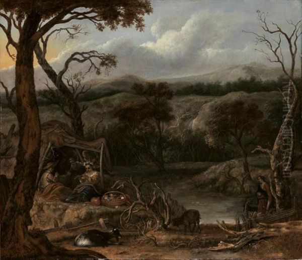 Pastoralt Landskap Med Figurstaffage