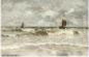 Bomschuiten In The Breakers Oil Painting by Gerhard Arij Ludwig Morgenstje Munthe