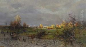 Peasants And Cattle On A Farmyard