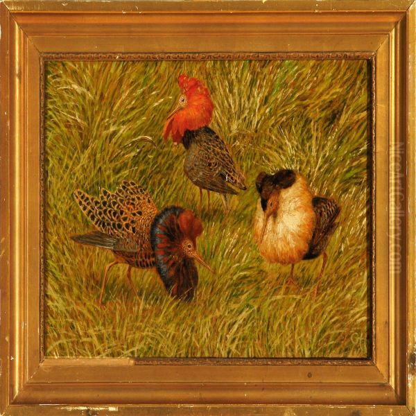 Three Ruffs On Grass