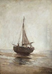 An Der Hollandischen Kuste. Fischer Ziehen Ihr Boot An Land