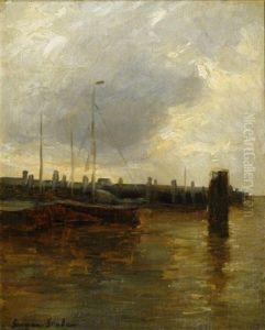Moored Bomschuiten At Dusk