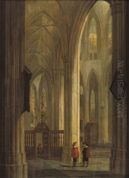 A Church Interior With Figures Conversing