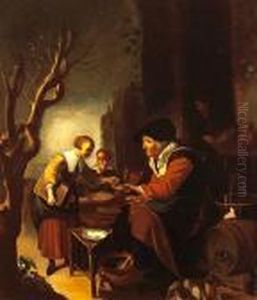 A Woman Counting Money By Candlelight