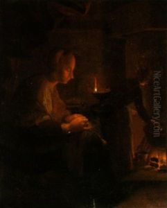 A Young Woman At A Casement With A Lamp
