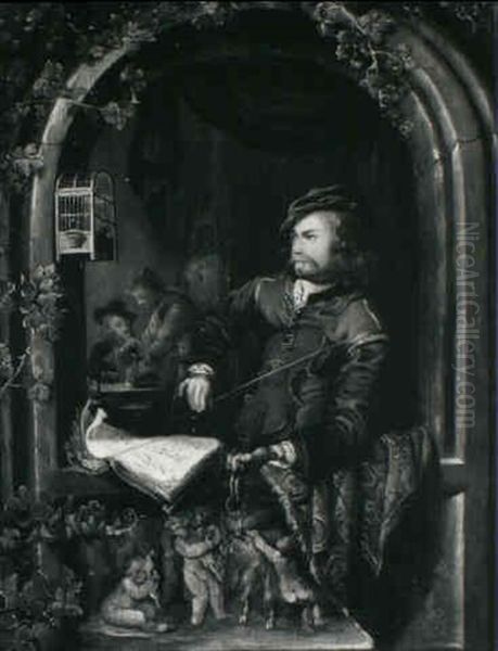 A Man Playing A Violin At A Casement