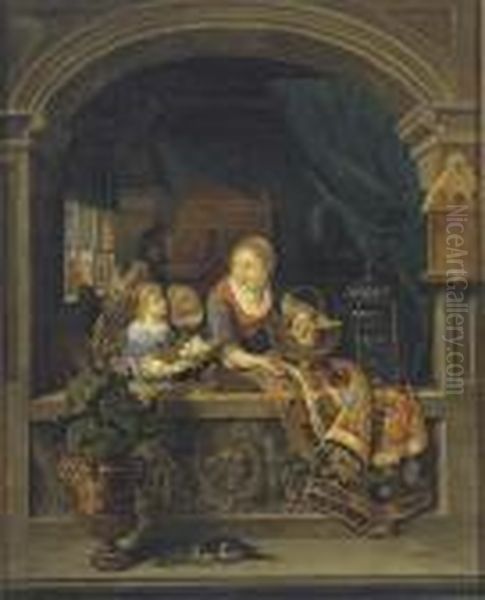 Bring the timeless beauty of Gerrit Dou's Woman Standing In A Stone Niche Holding A Copper Bowl With Peaches Two Girls With A Basket Of Eggs Beside Her into your home with a handmade oil painting reproduction. Carefully recreated on canvas by skilled artists using traditional techniques, this piece captures the delicate brushwork, subtle light, and vibrant color of the original masterpiece. With museum-level quality and rich texture, it brings elegance and artistic depth to any space. Enjoy free shipping and make this masterpiece a part of your personal collection.