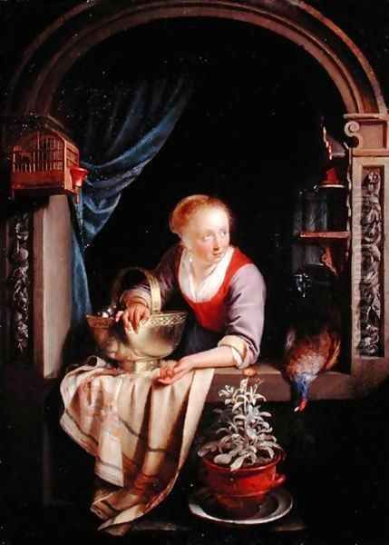 Bring the timeless beauty of Gerrit Dou's Woman at a Window 1663 into your home with a handmade oil painting reproduction. Carefully recreated on canvas by skilled artists using traditional techniques, this piece captures the delicate brushwork, subtle light, and vibrant color of the original masterpiece. With museum-level quality and rich texture, it brings elegance and artistic depth to any space. Enjoy free shipping and make this masterpiece a part of your personal collection.