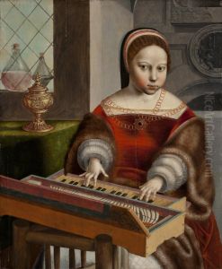 Young woman playing a clavichord