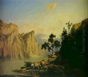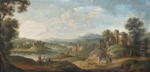 Flusslandschaft Mit Bauern Und Reisenden