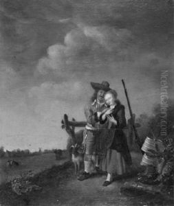 A Milkmaid Waylaid By A Sportsman Under A Tree In A Meadow