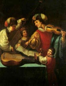 Pan Presenting Grapes To A Party Of Young Men And Women