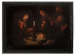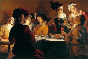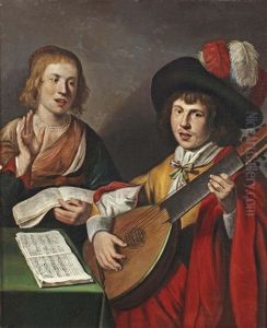 A Cavalier Lighting A Pipe From A Candle, An Old Woman Pouring From A Crock And A Young Woman Cutting Tobacco - A Fragment