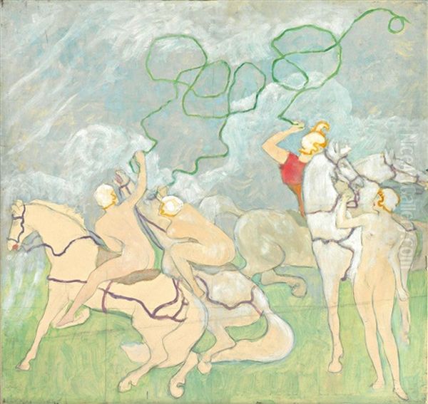Symbolistische Szene: Reitende Nymphen In Pastelltonen