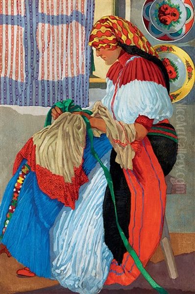 Young Girl Embroidering