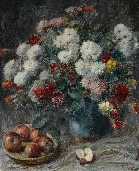 Still Life With Apples And Chrysanthemums
