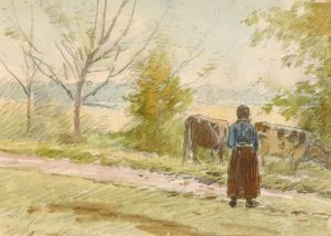 Geza Meszoly was a Hungarian painter, best known for his landscape paintings that captured the essence of the Hungarian plains and natural surroundings. Born on June 1, 1844, in Miskolc, Hungary, Meszoly showed an early interest in art and began his formal education at the Vienna Academy of Fine Arts. He continued his studies in Munich, which was a major center for art and culture at the time. Meszoly was greatly influenced by the Barbizon school, a French movement that emphasized painting landscapes en plein air (in the open air) and had a naturalistic approach.