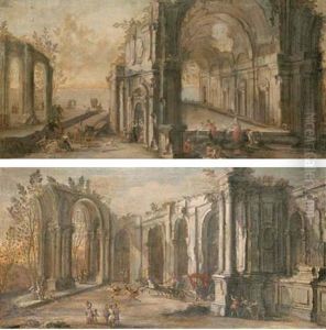 Washerwomen And Other Figures Among Architectural Ruins