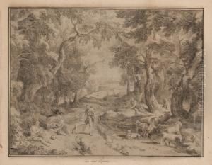 Paesaggio Lacustrecon Pastore Ed Il Suo Gregge