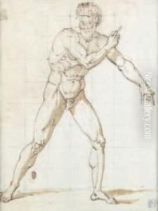 Brune, Lavis Brun, Sur Traits De Sanguine