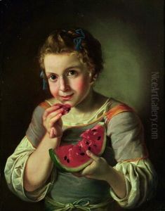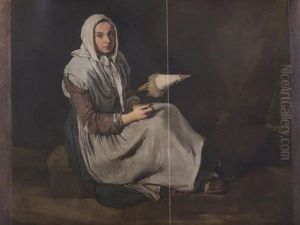 A Young Woman Seated With Her Baby And A Small Child, A Young Girl Holding Two Doves Beyond