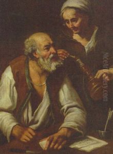 Peasant Women Setting A Mouse Trap By Candlelight Outside A Cottage