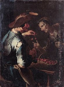 Verkaufsstand Mit Obstverkauferin Und Figurenstaffage (+ Kucheninterieur Mit Figurenstaffage Und Einem Lautenspieler; Pair)