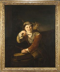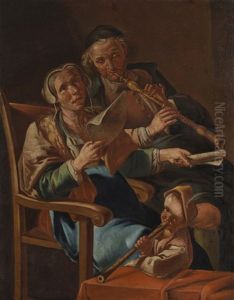 Suonatrice Di Gironda, Ragazzo E Giovane Con Brocca E Pipa (a Woman Playing A Gironda, A Boy And A Young Man With Jug And Pipe)