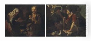 A Lady Visiting A Tailor's Workshop With Her Child (+ An Interior With Two Ladies, And A Young Boy Eating And Drinking; Pair)