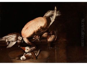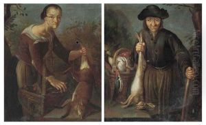 An Old Woman With A Dead Fox And Chickens In A Basket (+ An Old Man With A Dead Hare And A Basket Of Birds; Pair)