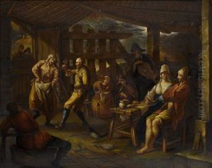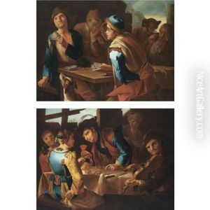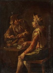 Figures Playing Cards At A Table (+ Figures Merry-making At A Table With A Manp Laying The Violin; Pair)