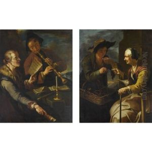 Pendants - Flotenspielender Hirtenjunge & Pfeifenrauchender Und Musizierender Bauer Beim Mahl (pair)