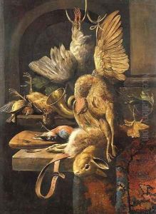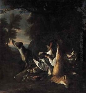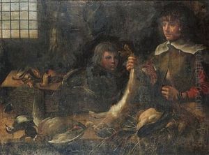 A Peasant Man Holding A Dead Hare With A Basket Of Dead Birds Beside Him; And A Peasant Woman Holding A Dead Fox With A Basket Of Chickens Over Her Arm