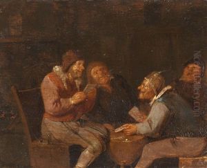 Peasants Playing Cards; And A Man Buying Wine From A Girl