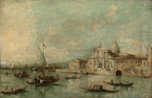 A View Of The Island Of San Giorgio In Alga, Venice, With Gondolas In The Foreground