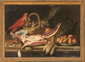 Natura Morta Con Cane, Carni, Frutta, Melone E Pasta