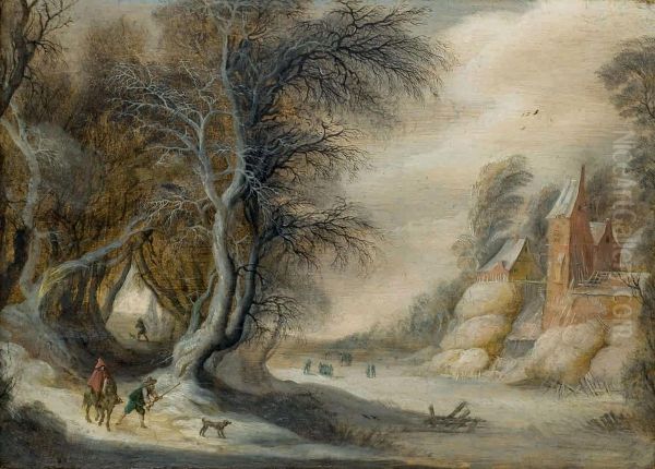 Chasseurs Dans Un Paysage D'hiver