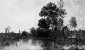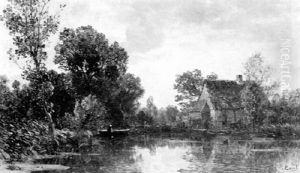 Flusslandschaft Mit Einer Muhle