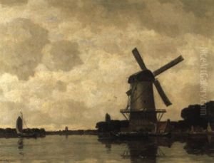 Hollandische Fluslandschaft Mit Windmuhle