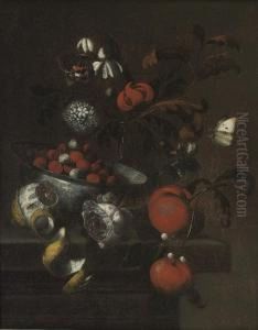 Still Life Of Peaches In Chinese Bowl