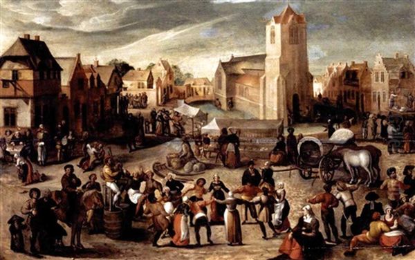 A Village Kermesse Oil Painting by Gillis Mostaert the Elder