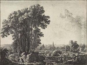 A Landscape With A Large Tree Overhanging A Track, A Traveller And A Seated Woman To The Right