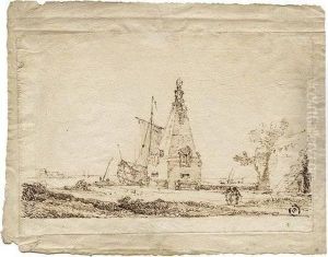 Travelers On A Road By Windmills And A Distant View Of Antwerp