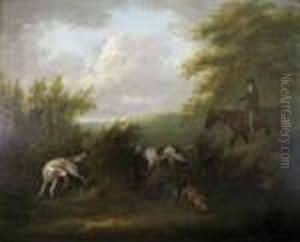 A Wooded Landscape With Huntsmen On A Path, Figures Resting In A Clearing In The Foreground