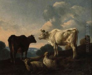 Kuhe und Schafe in einer Landschaft