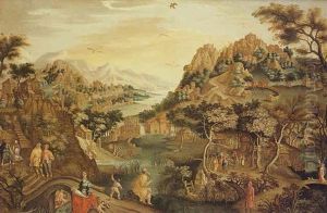Paysage De Montagne Traverse Par Un Fleuve Avec Le Prophete Osee Et Son Epouse Gomer