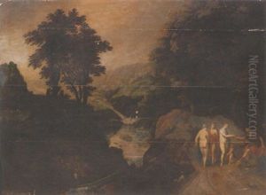 Waldlandschaft Mit Biblischer Staffage (christus Und Die Ehebrecherin?)