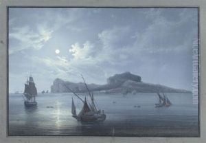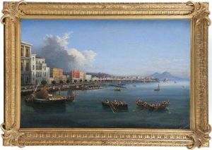 Figures On The Shore With Vesuvius Erupting In The Background